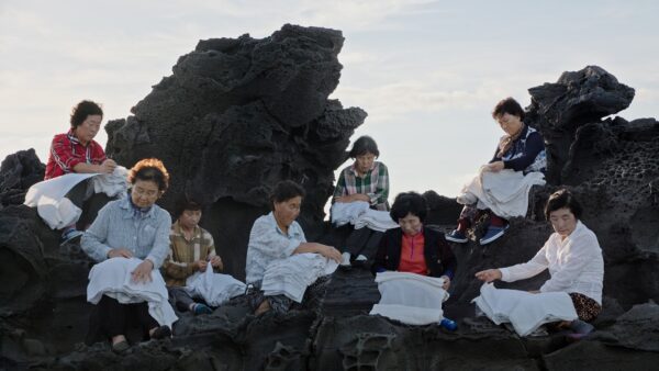 HB:n teosten esitettiin ilmentävän ”liikkuvia moninaisuuksia”, kollektiivisten mielikuvitusten kirjoa, joka kuulostaa väistämättä korviini lähivuosien biennaalijargonin uudelleenkierrättämiseltä. Pimeässä näyttelytilassa heräsi ensin kysymys videoteosten äänten epäonnistuneesta installoinnista, koska tila oli todella kakofoninen. Tämä on kuitenkin mitä ilmeisemmin ollut tarkoitus, koska kaikki teokset ovat eteläkorealaisen Jane Jin Kaisenin videoteoksia. Kaisen on sitoutunut Korean eteläpuolella sijaitsevan, vulkaanisen Jejun saaren parissa työskentelyyn, ja hänen teoksensa käsittelevät saaren historiaa, ekoympäristöä ja sen ihmisiä. Esimerkiksi videotyö Halmang (2023) käsittelee paikallisten naiskalastajasukeltajien, haenyeojen (”merinaisten”) yhteyttä korealaiseen shamanismiin. Videotöiden ohella Kaisen esitti Halamngissa haenyeojen käsittelemän valkoisen sochang-vaatteen, joka oli installoitu näyttelytilan kattoon. Larissa Arazin seinään tekemät liitutöiden esittämät kuvat ketuista ja Vikrant Bhisen maalaukset olivat näyttäviä, mutta HB:n osuus oli muuten hyvin typistetty.