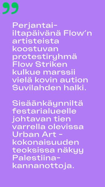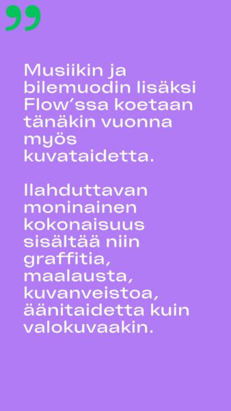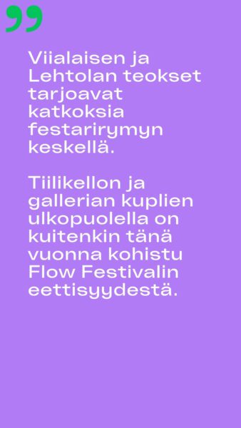 Jaakko Uoti tarkastelee Mustekalan Instagramissa (@mustekala.info) julkaistussa kritiikissä Flow Festivalin 2024 kuvataidetarjontaa.