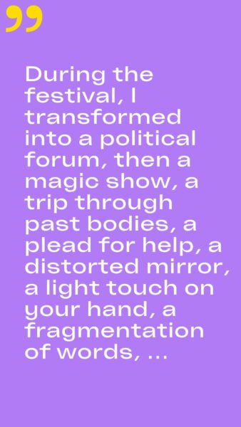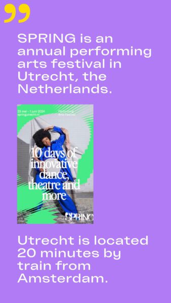 Tanja Becher analyses the SPRING Performing Arts Festival 2024 held in Utrecht, the Netherlands in a review published in Mustekala’s Instagram (@mustekala.info).