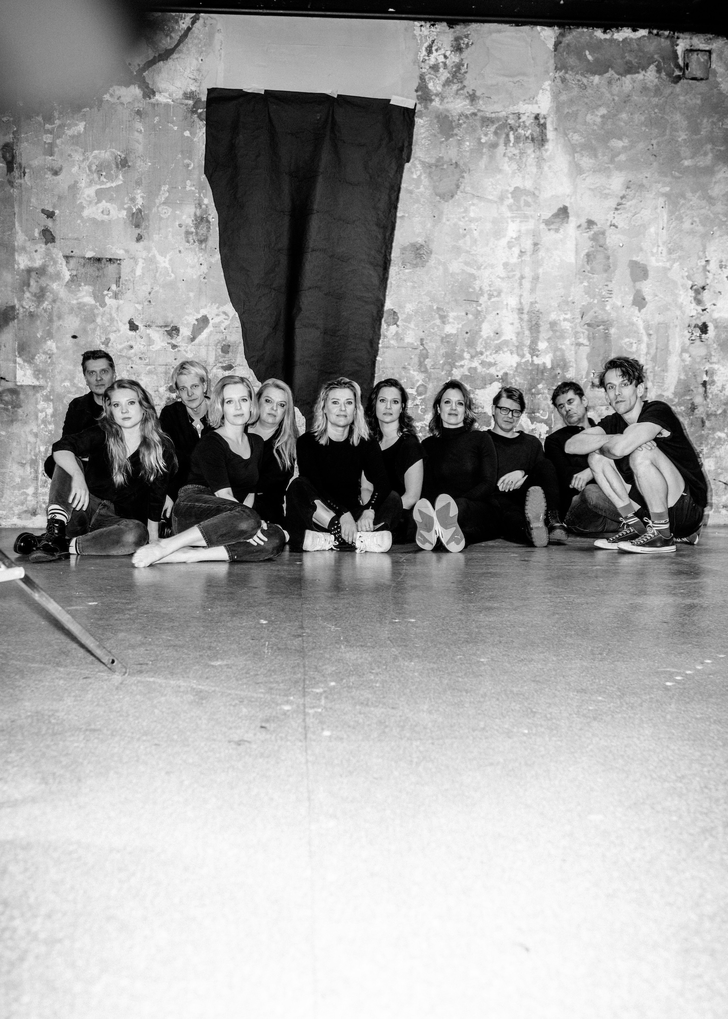 Kuvassa Q-teatterin näyttelijäensemble vuodelta 2024. Kuvaaja: Nick Tulinen.