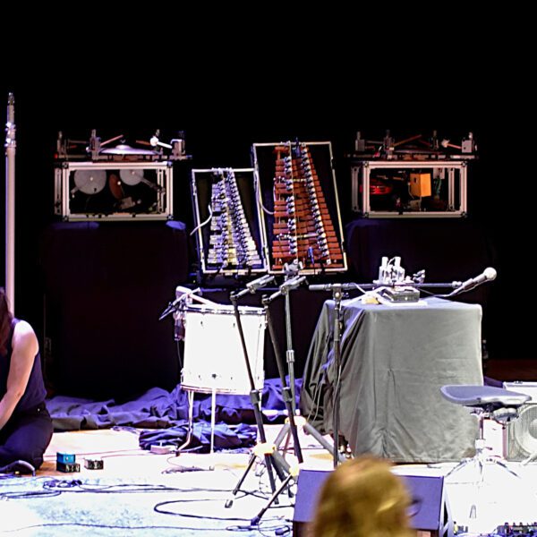 Kuva: Pat Methenyn Finlandia-talon konsertissaan 13.8.2025 hyödyntämiä robotisoituja soittimia.